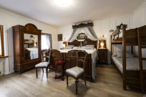All’interno del Palazzo Cervesato, una stanza intrisa di storia ove soggiornò la Regina Margherita di Savoia. Arrivata a Santo Stefano di Cadore per un breve soggiorno. Sul muro esterno del palazzo, su pietra bianca scolpita estratta dalle cave del Monte Pinè del Passo Fadalto, dallo scultore G. Giacomini di Belluno, si può leggere: “Margherita di Savoia Regina d’Italia col Principe di Napoli qui si intrattenne visitatrice acclamata nel giorno 3 settembre 1881 che il municipio ricorda.” Una stanza dedicata a chi ama la storia.